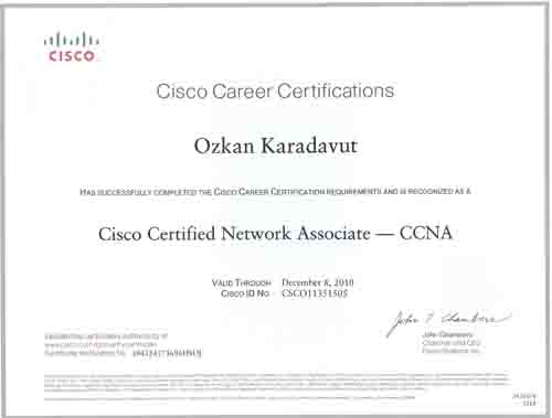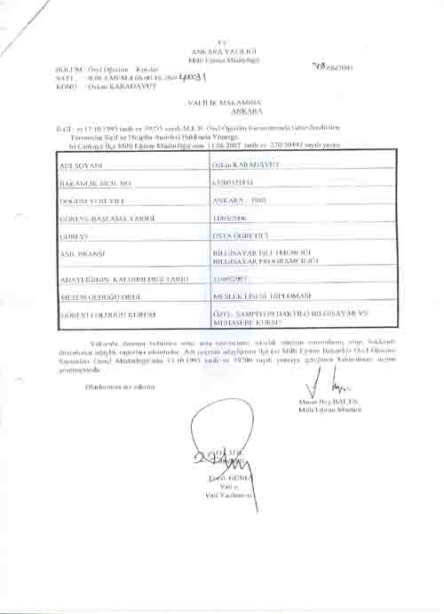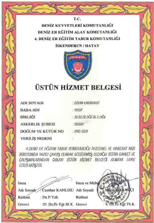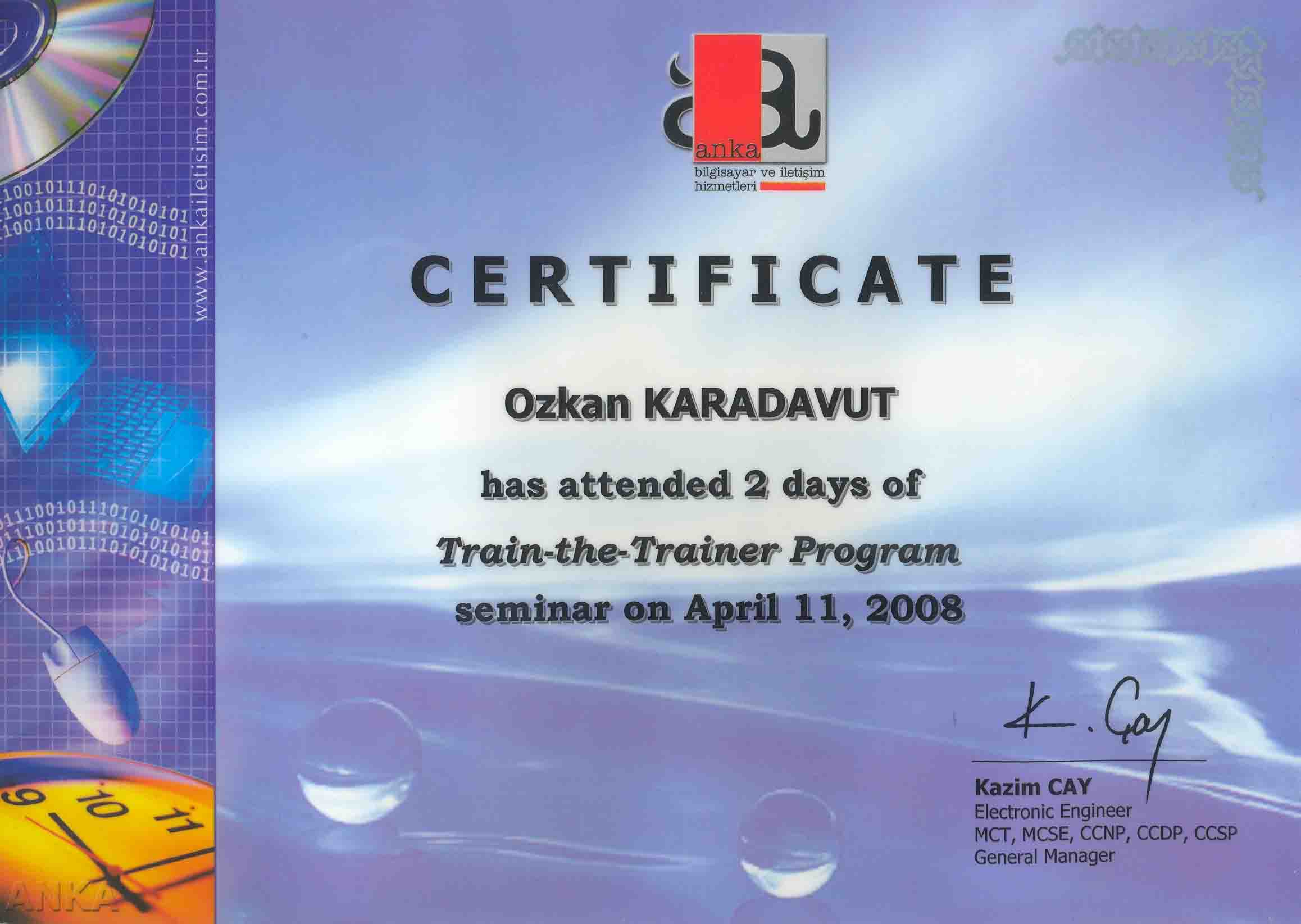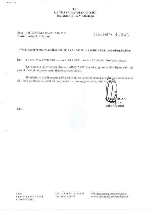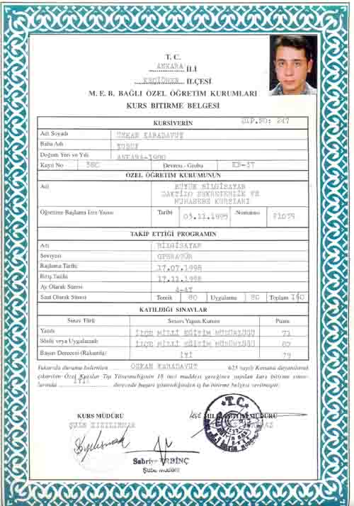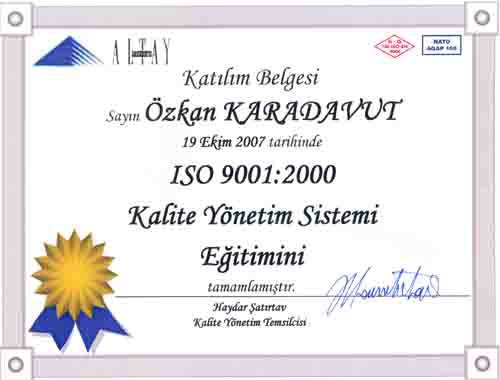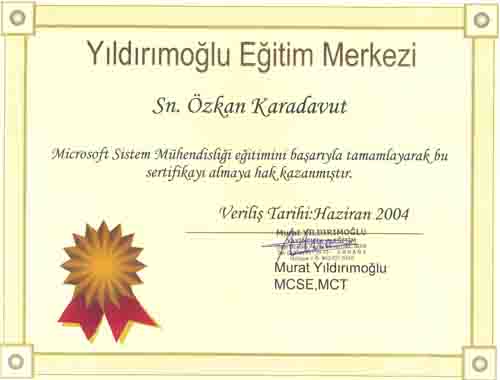 Yıldırımoğlu Eğitim Merkezi Certificate |