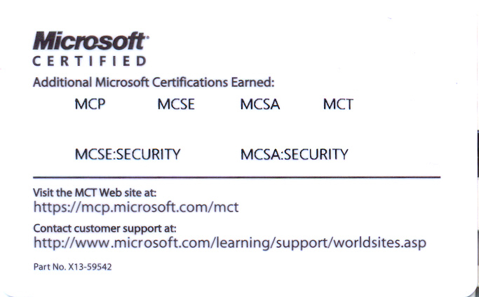 Microsoft Certified Systems Administrator:Security (MCSA+S) |